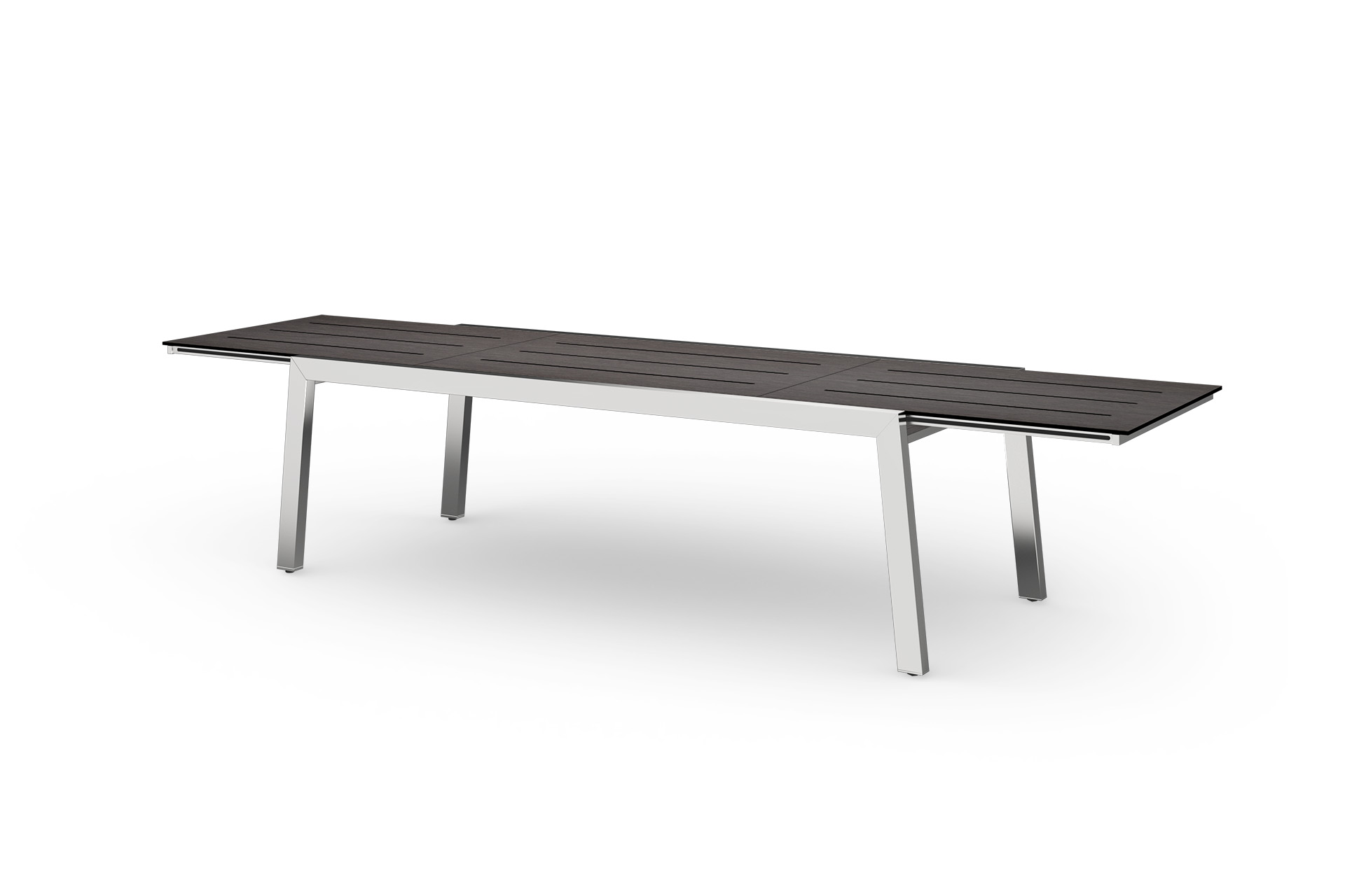Able to accomodate 12 people more than comfortably, this ‘high pressure laminate’ and stainless steel dining table easily extends from 230 to 360cm in a moment.