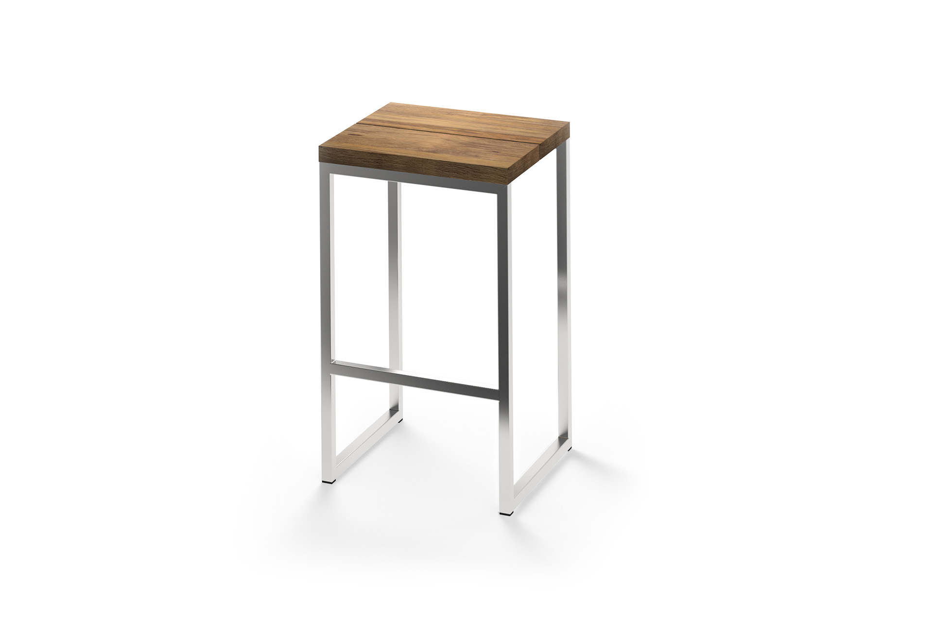 Classic outdoor picnic stool, matching the OKO high table perfectly. Brushed teak and stainless steel frame (as original, or powder coated).